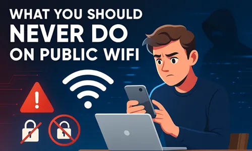 Many people underestimate the risks of free hotspots, but knowing what you should never do on Public WiFi is key to protecting your privacy and keeping your data secure. When using Public WiFi, it’s important to recognize that even simple online actions can open doors for cybercriminals. Below are critical mistakes you must avoid to Stay Safe on Public WiFi: